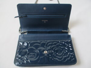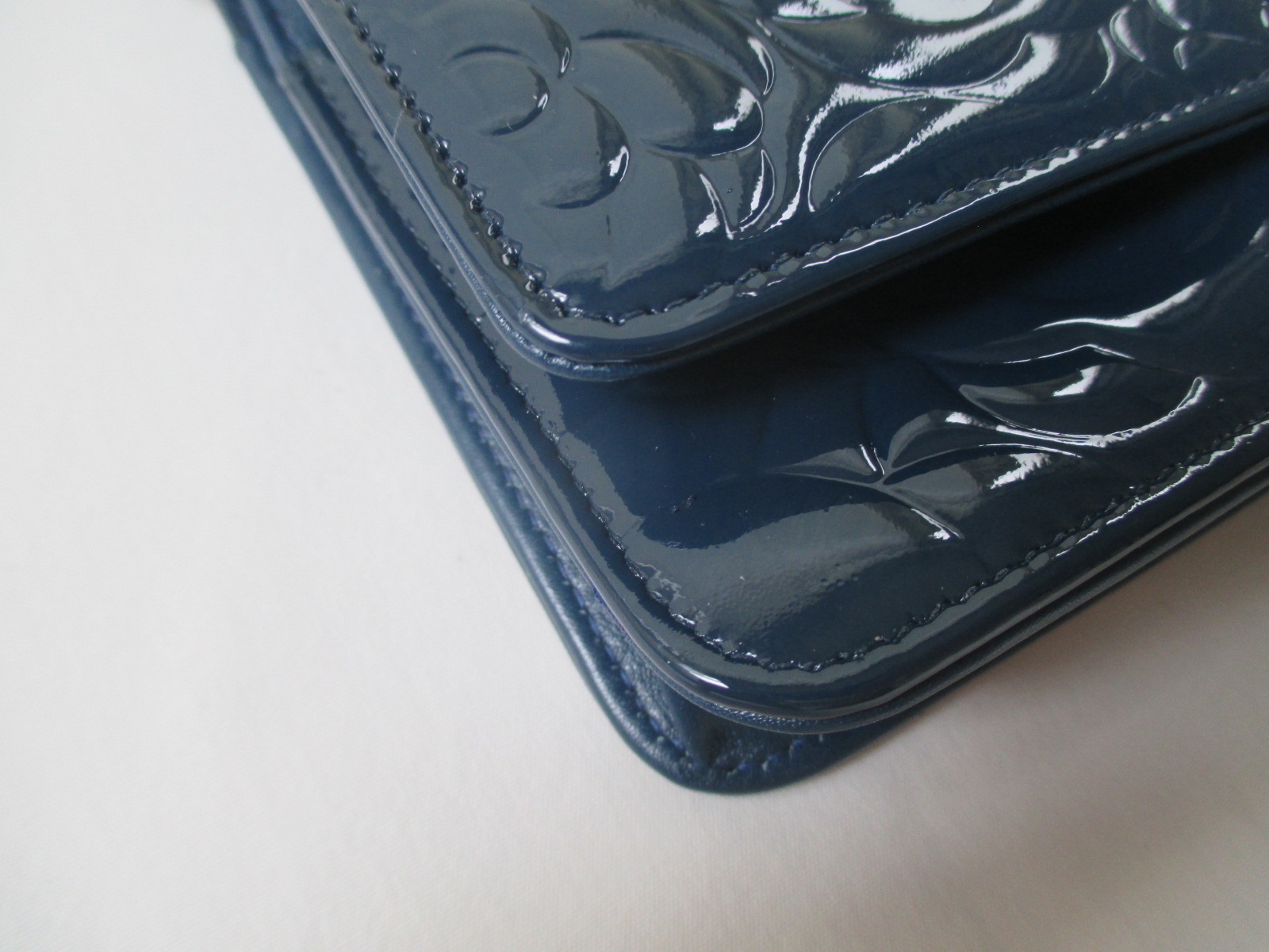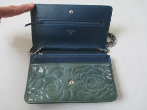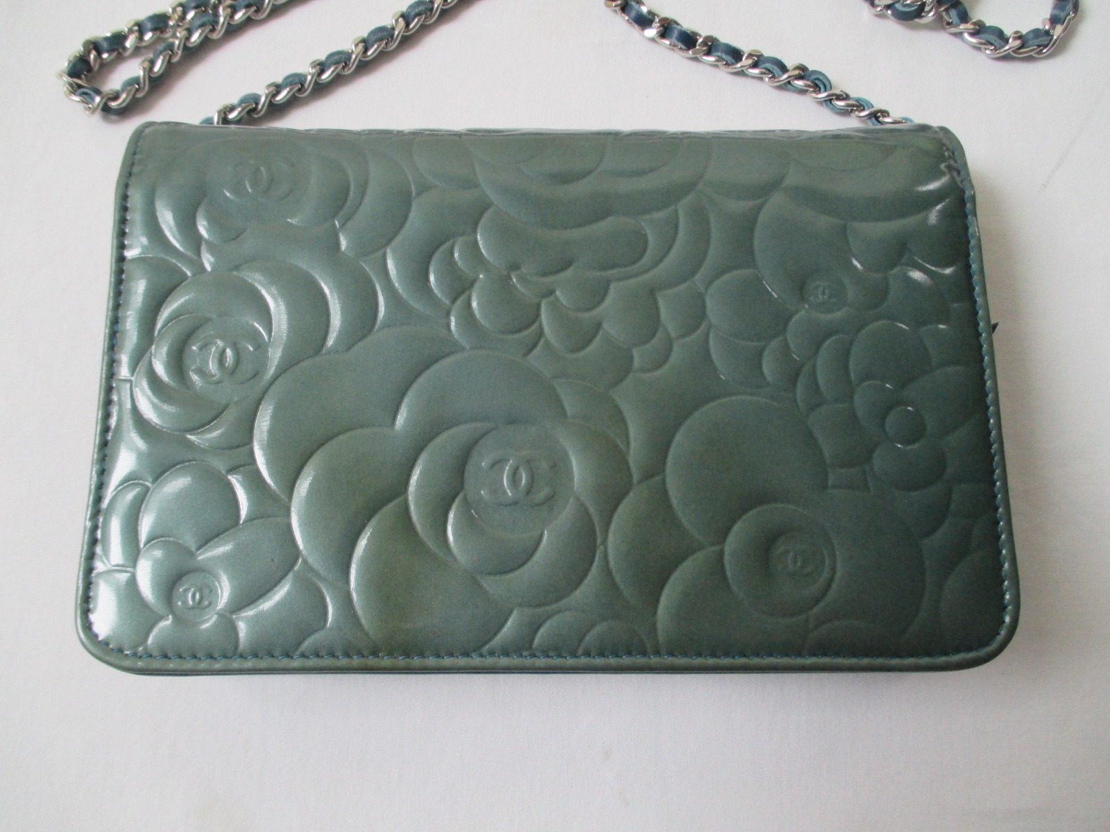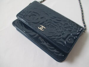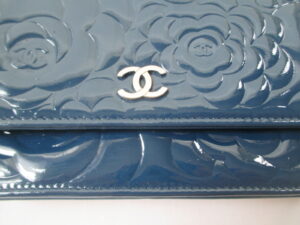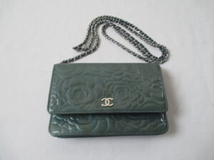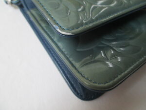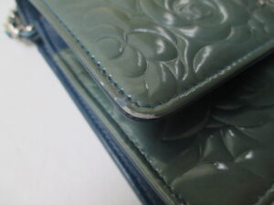 【CHANEL バッグ 修理】 シャネル チェーンウォレット 緑色に変色したエナメルバッグを元の色に再生しました