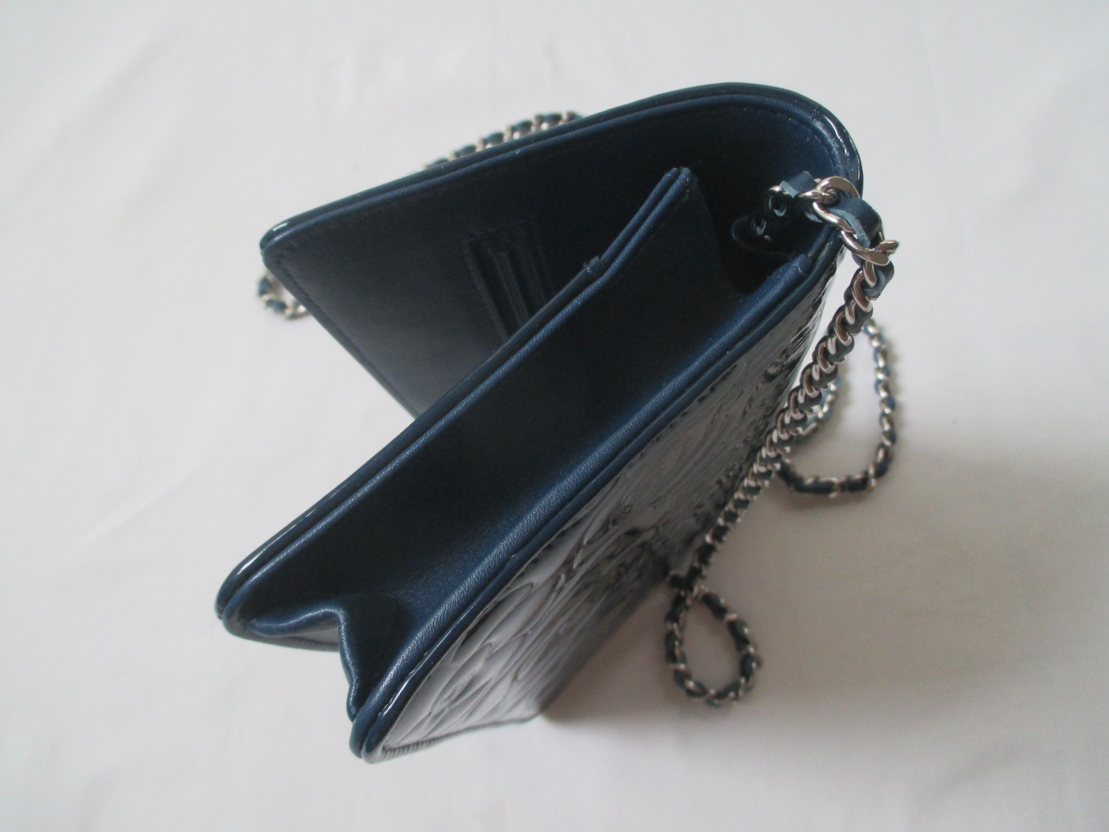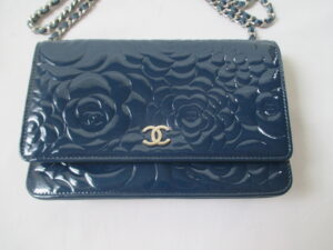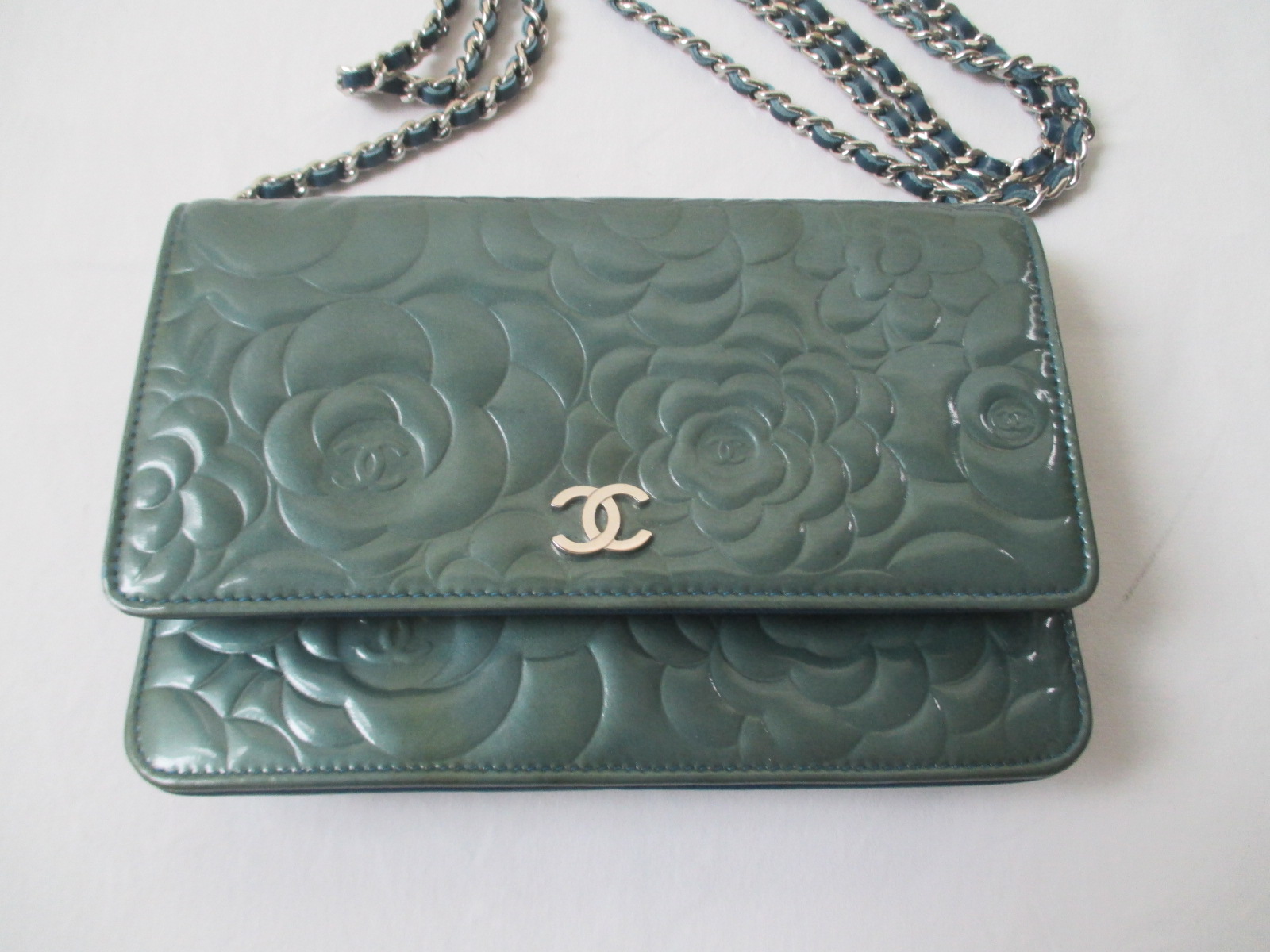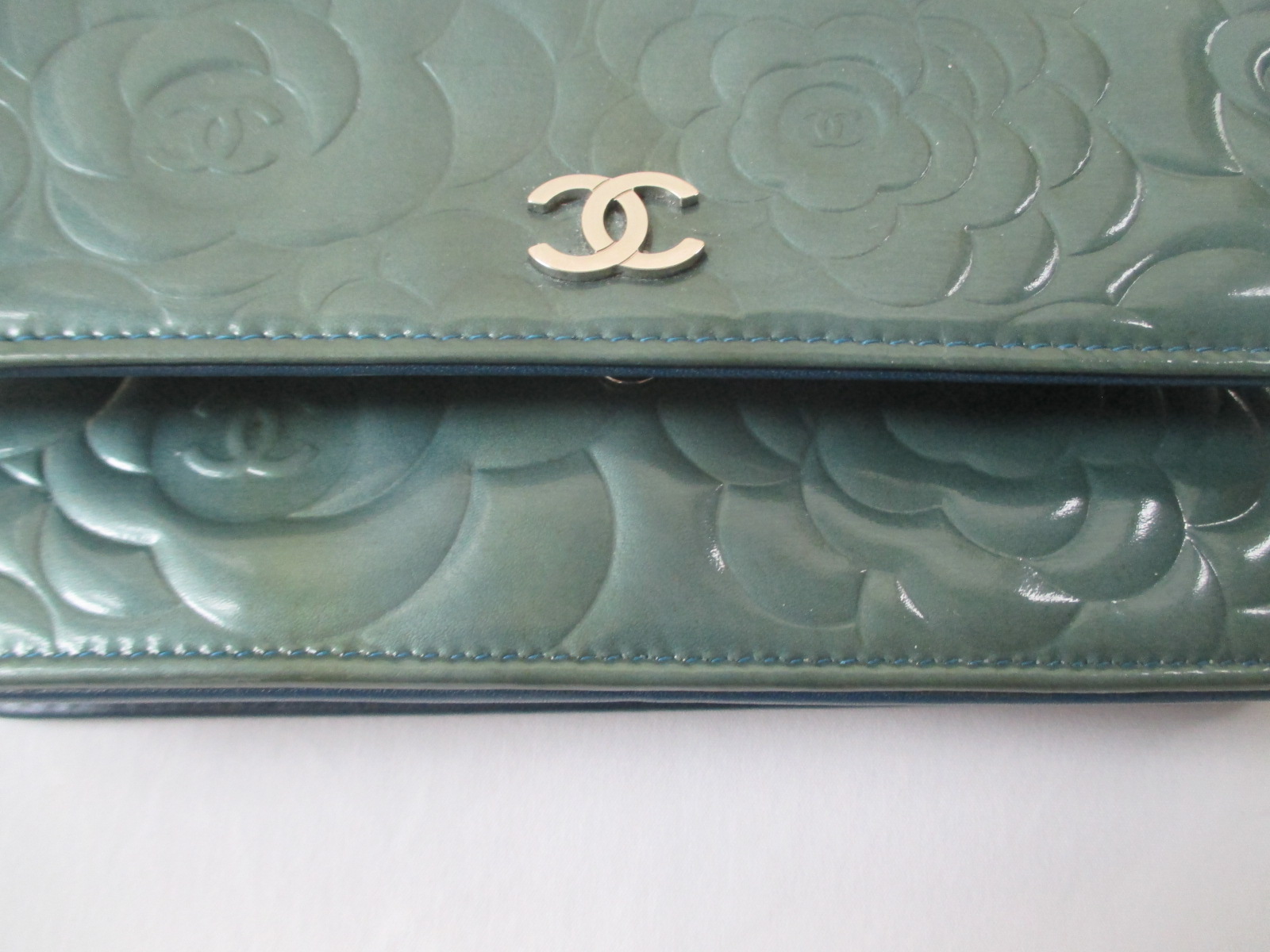 【CHANEL バッグ 修理】 シャネル チェーンウォレット 緑色に変色したエナメルバッグを元の色に再生しました