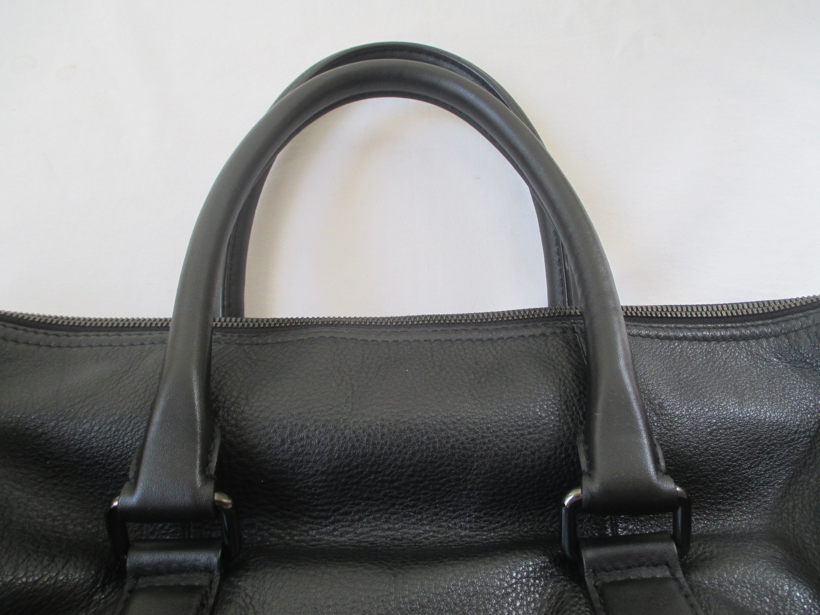 【HUGO BOSS バッグ 修理】 ヒューゴ ボス ボストンバッグ 四隅のパイピングの穴開き・目立つ色はげの修理