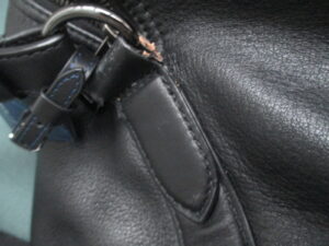 ショルダーストラップを支える根革の根元が重みで弱っており