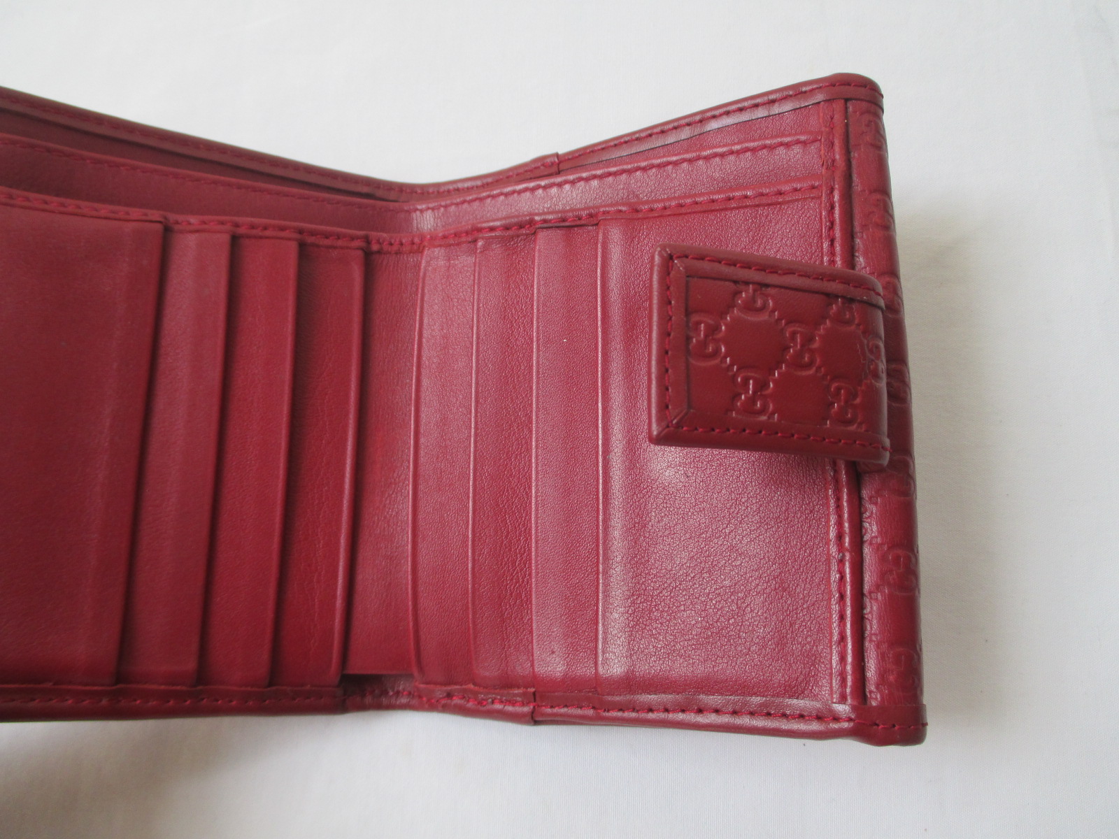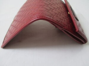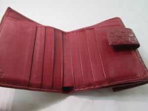 深いボルドー系の色がきれいな財布で一見して状態はいいのですが