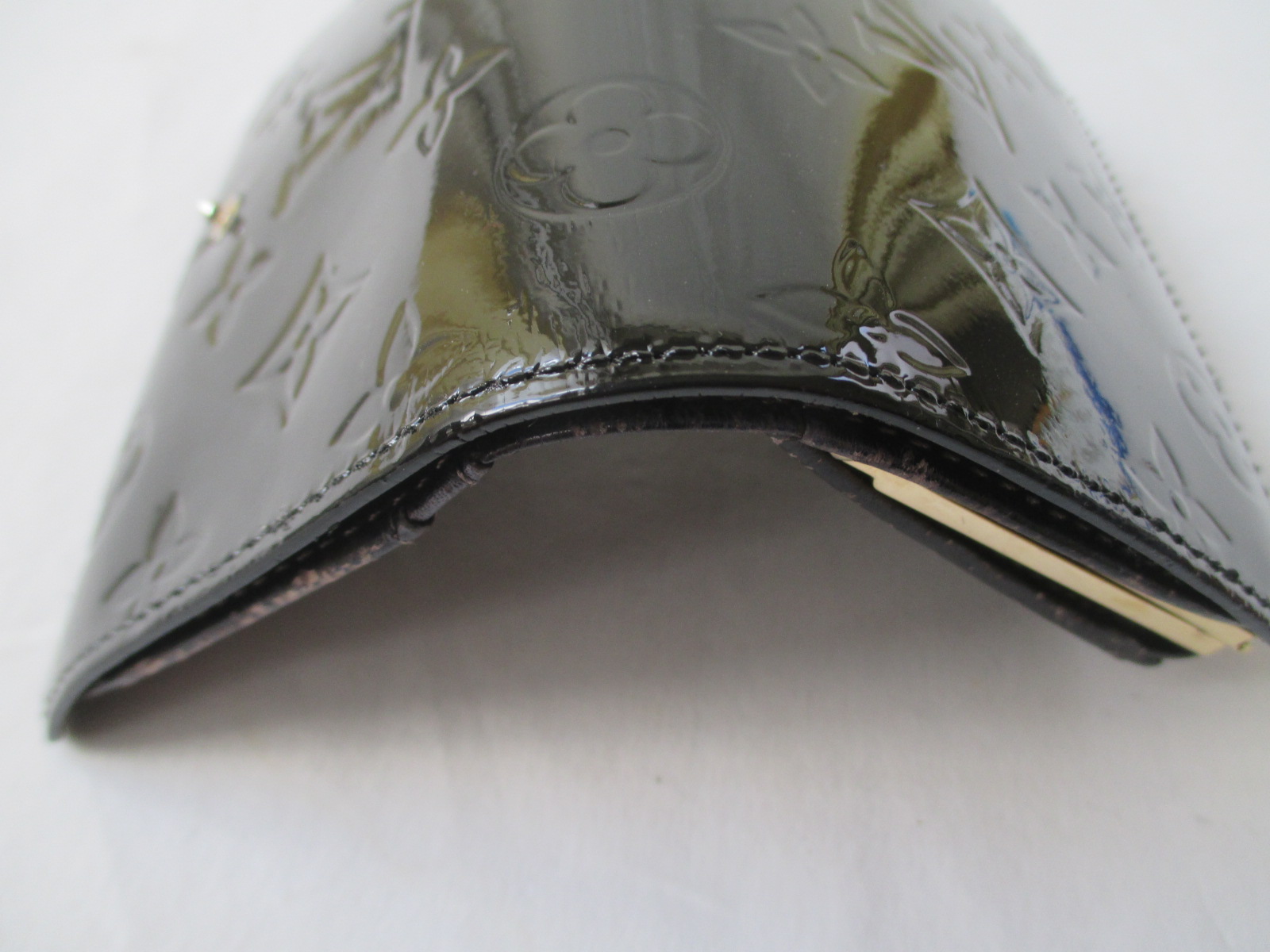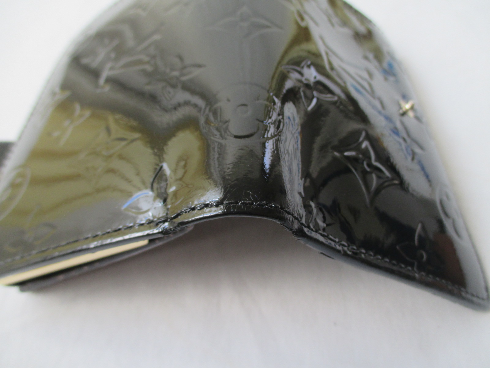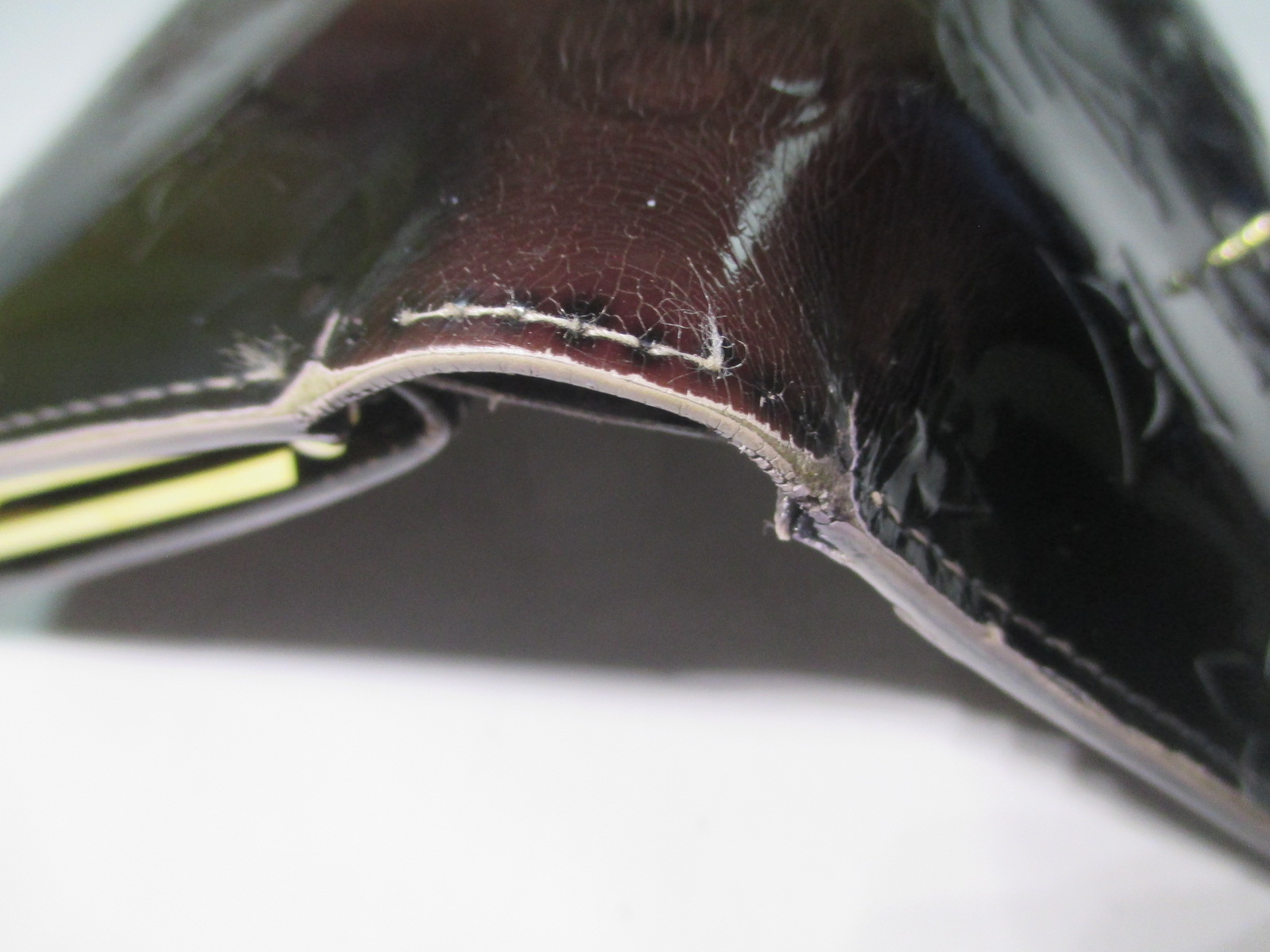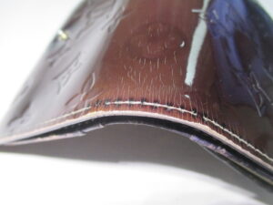 【Louis Vuitton 財布 修理】ルイ ヴィトン ヴェルニ 色あせしたエナメル財布の染め直し 切れたステッチの再縫製