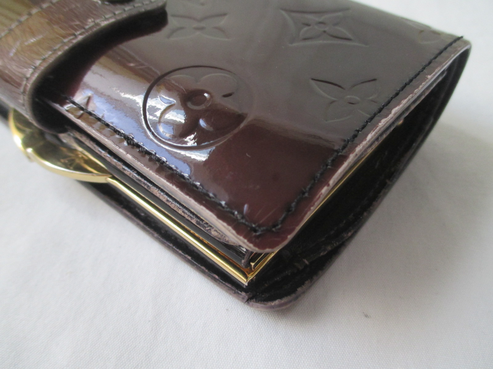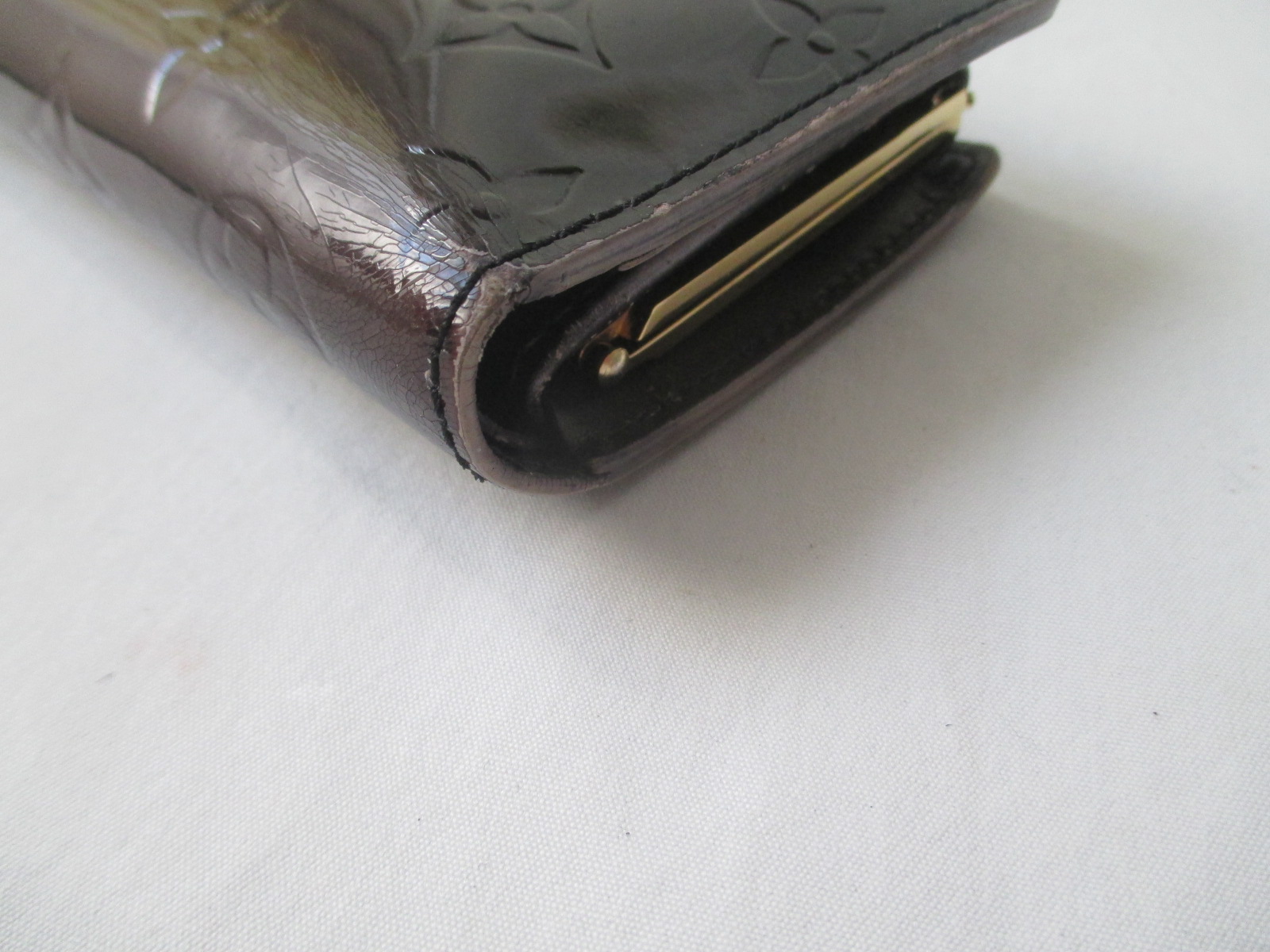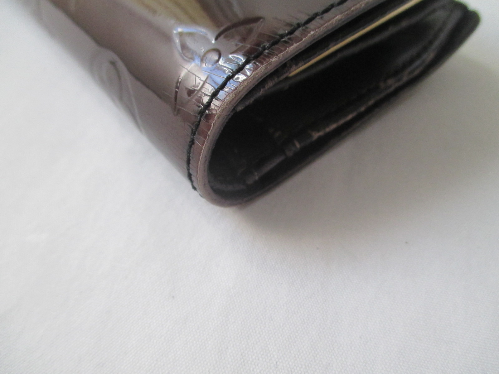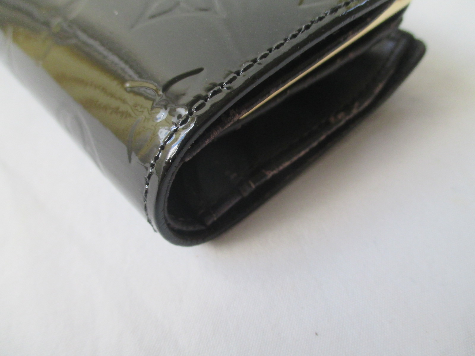 【Louis Vuitton 財布 修理】ルイ ヴィトン ヴェルニ 色あせしたエナメル財布の染め直し 切れたステッチの再縫製