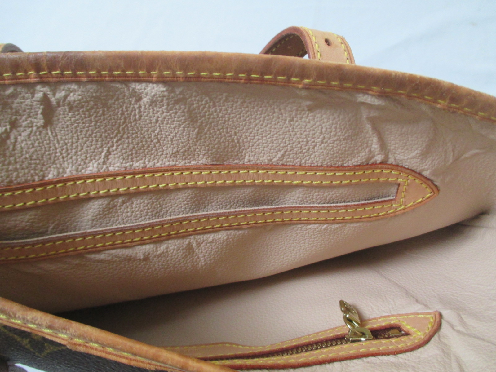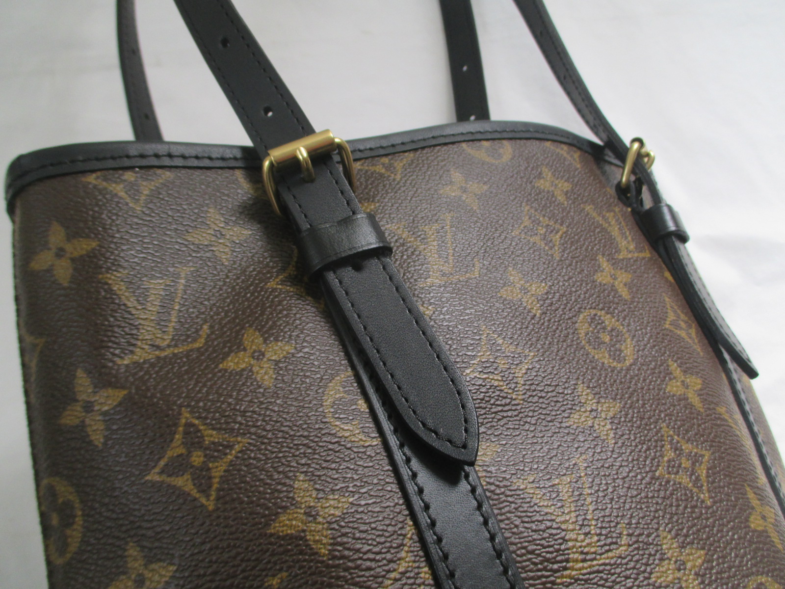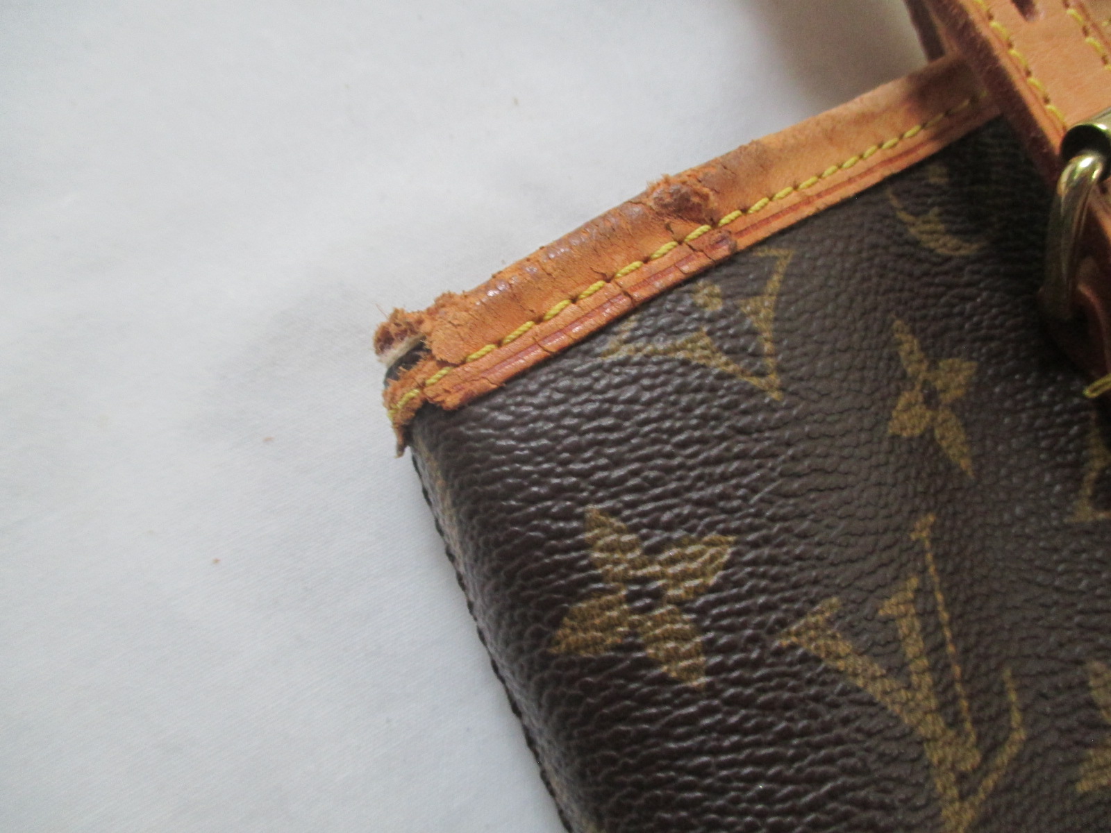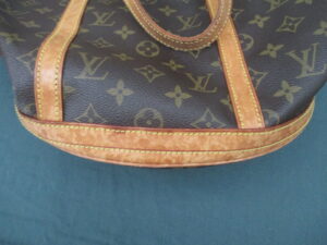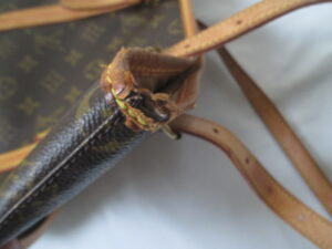 【Louis Vuitton バッグ 修理】ルイ ヴィトン モノグラム 古いバッグのヌメ革を黒に交換・カラーチェンジ
