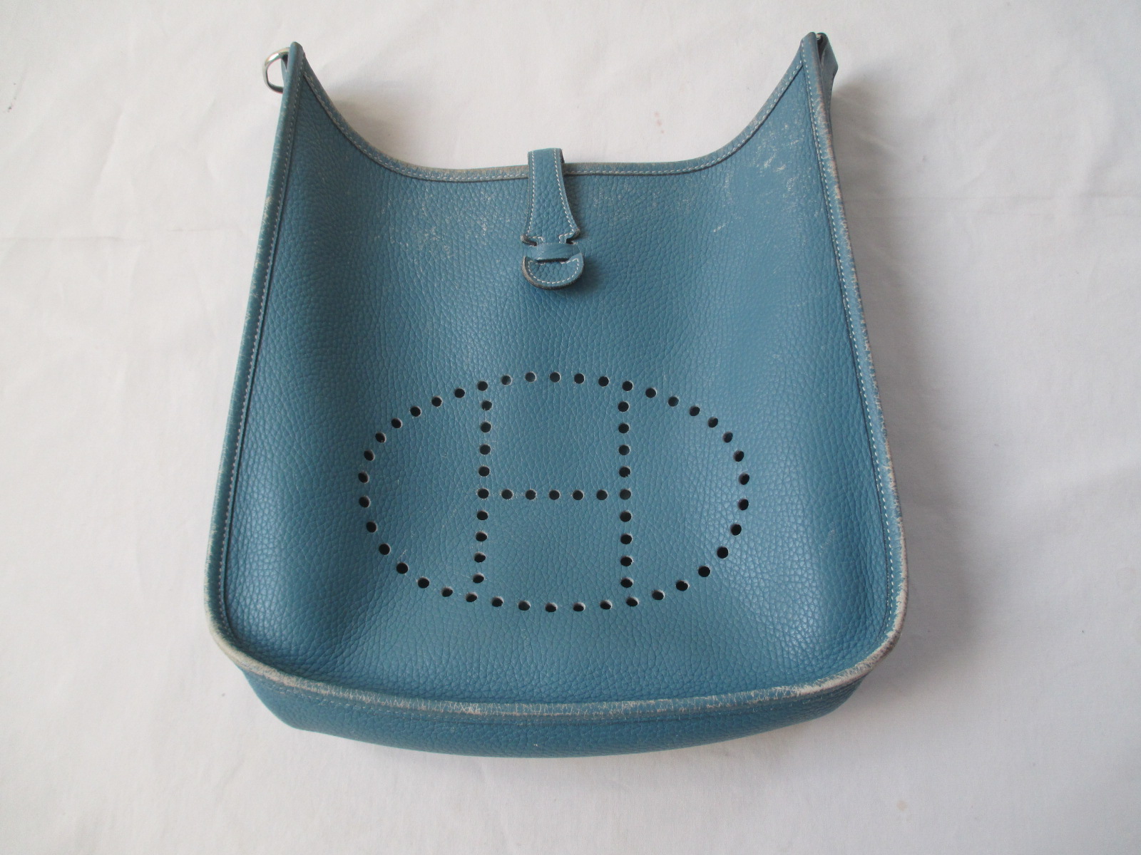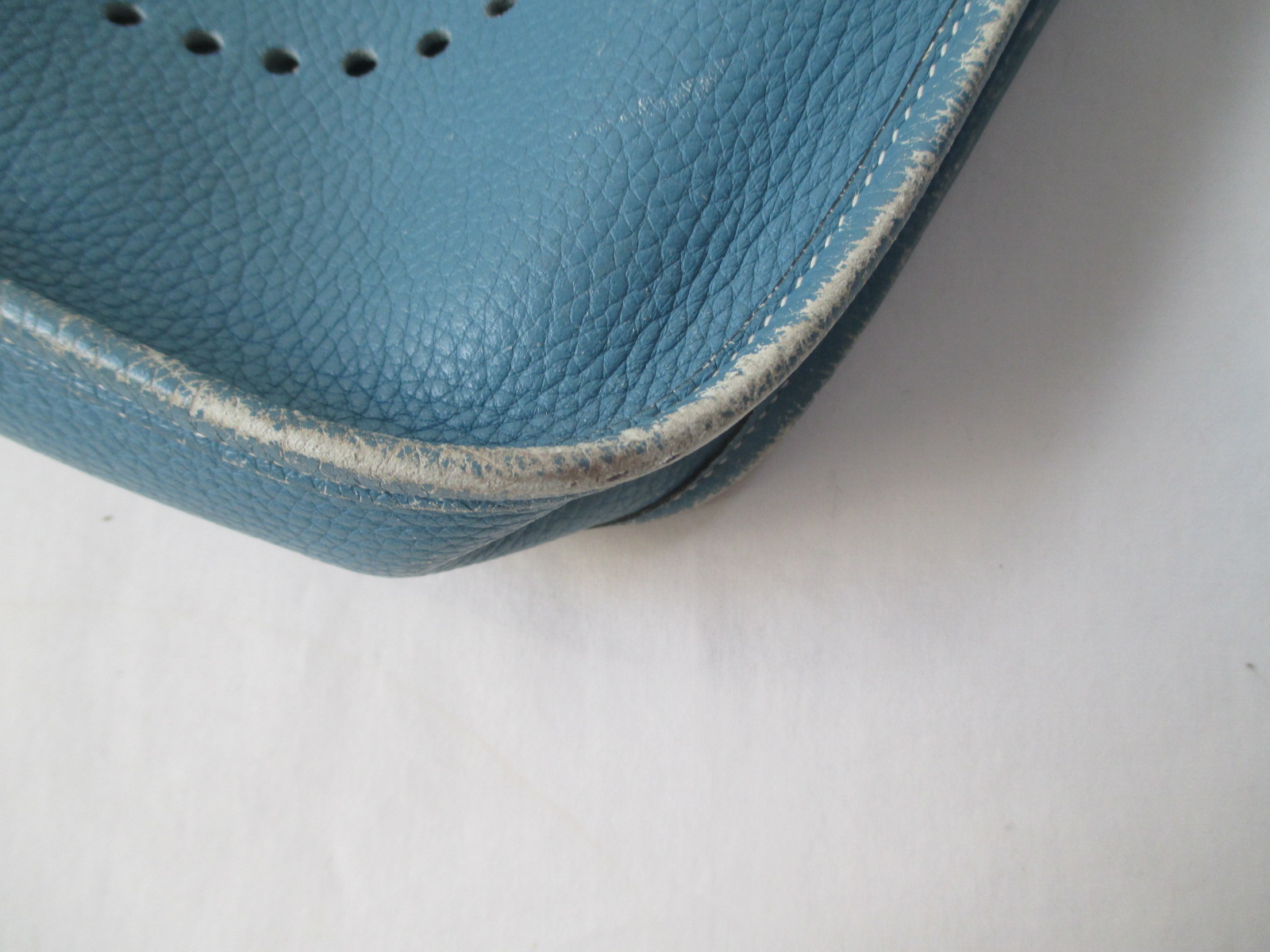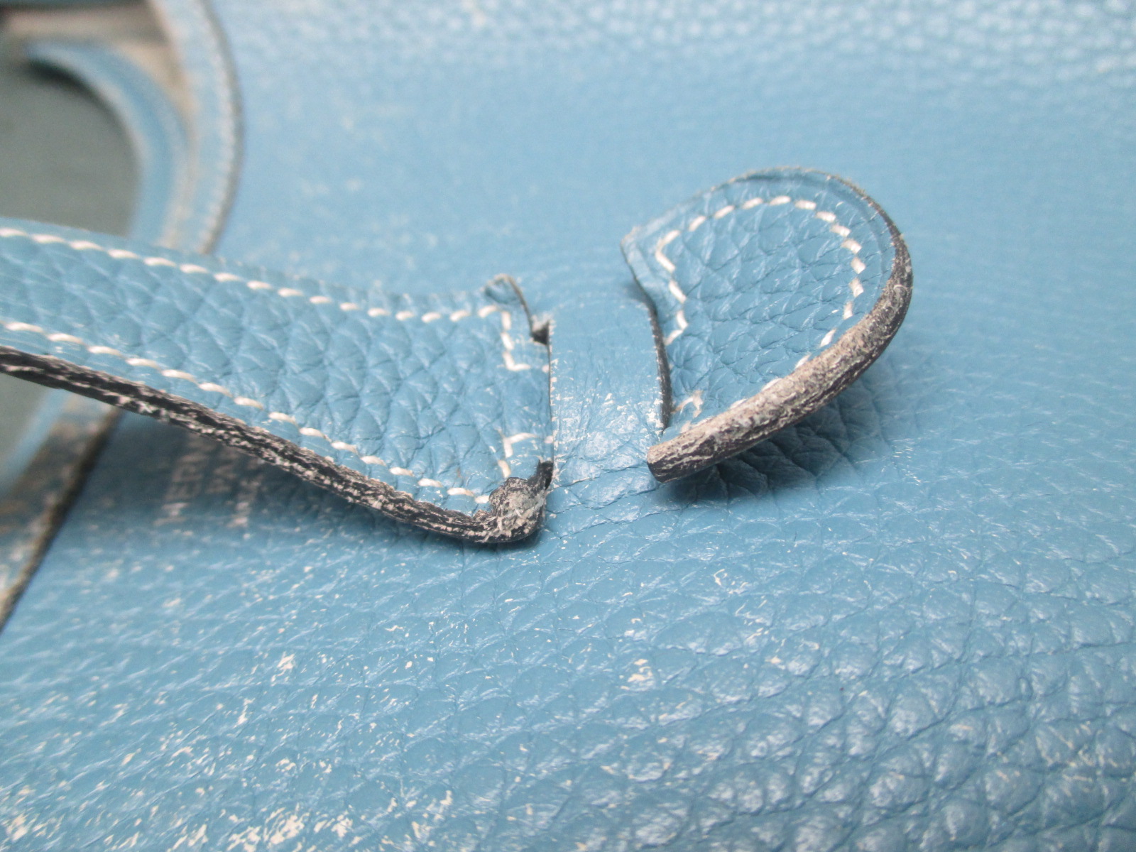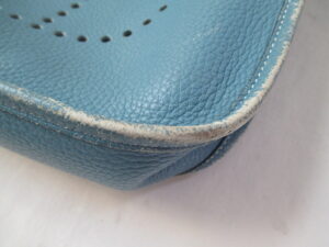 【Hermes バッグ 修理】エルメス エヴリン バッグ 傷んだヘリ巻き革の修理・交換 色あせ 染め直し