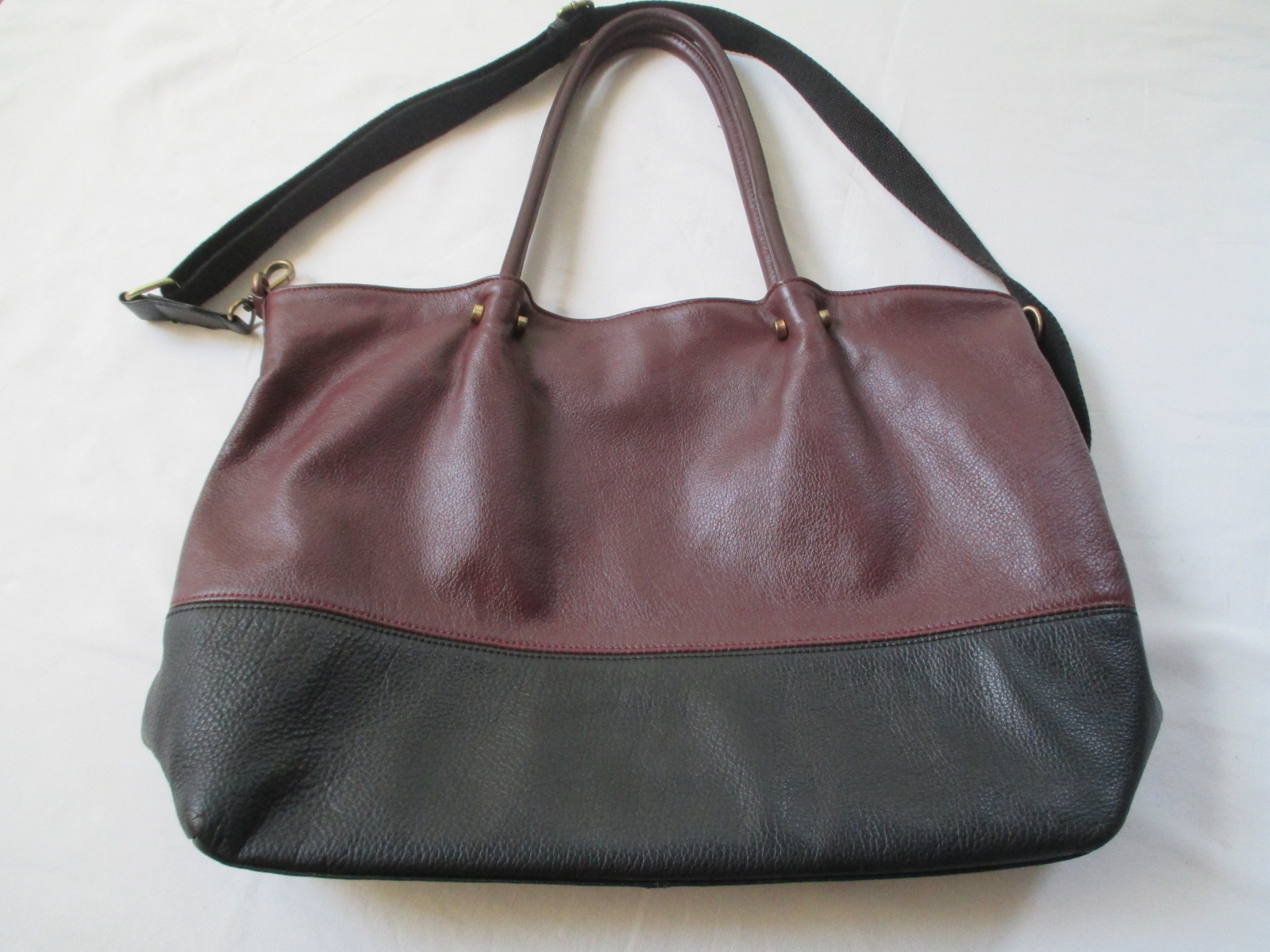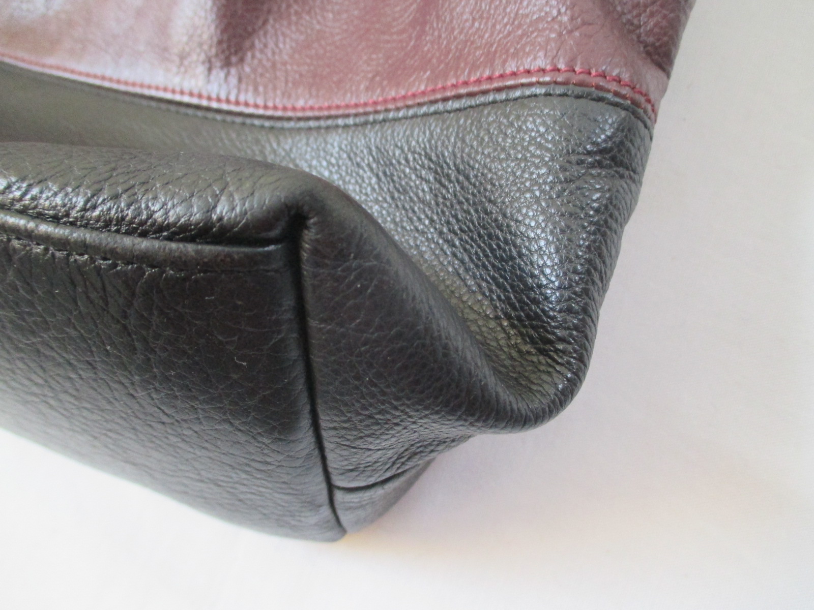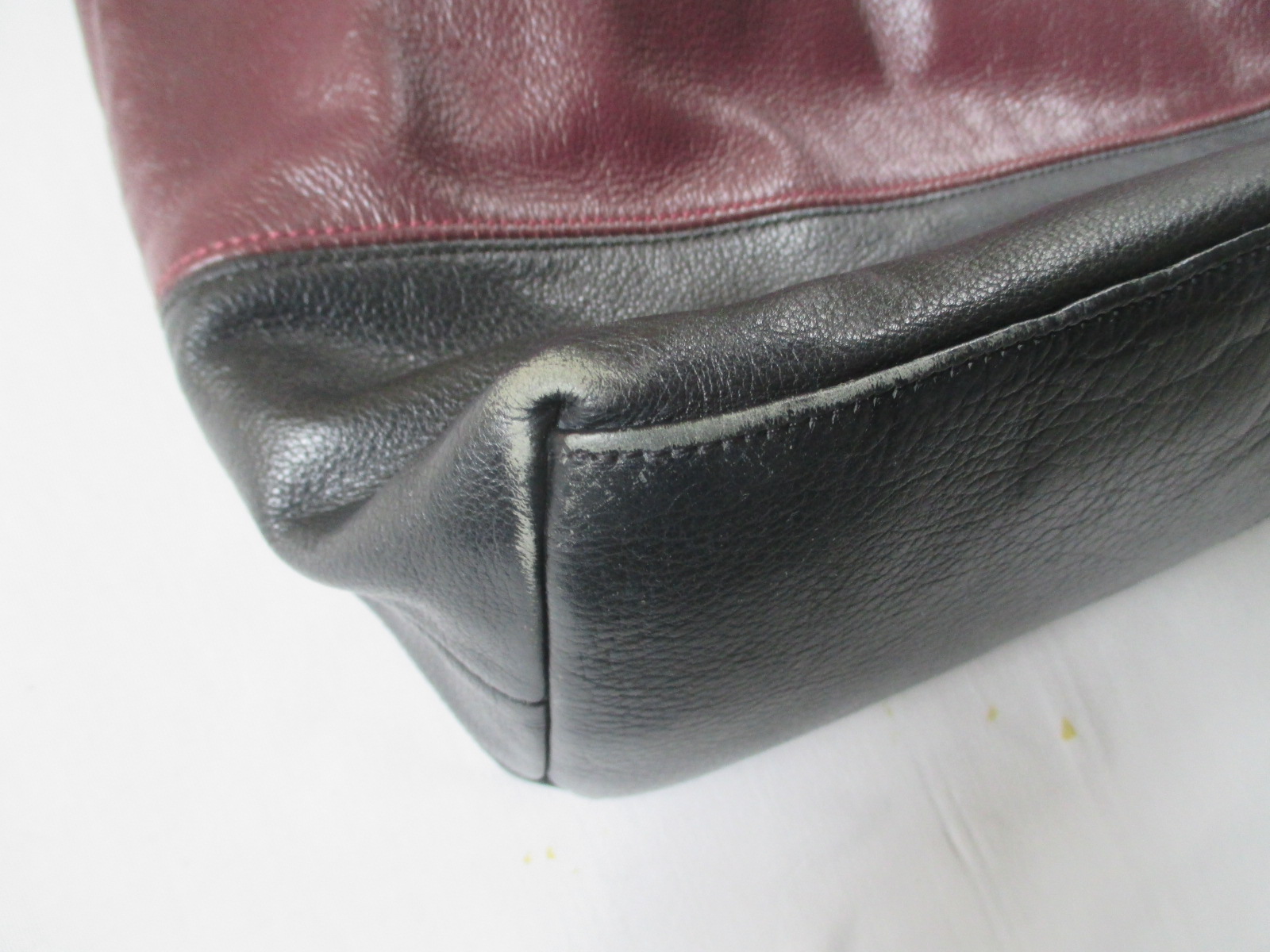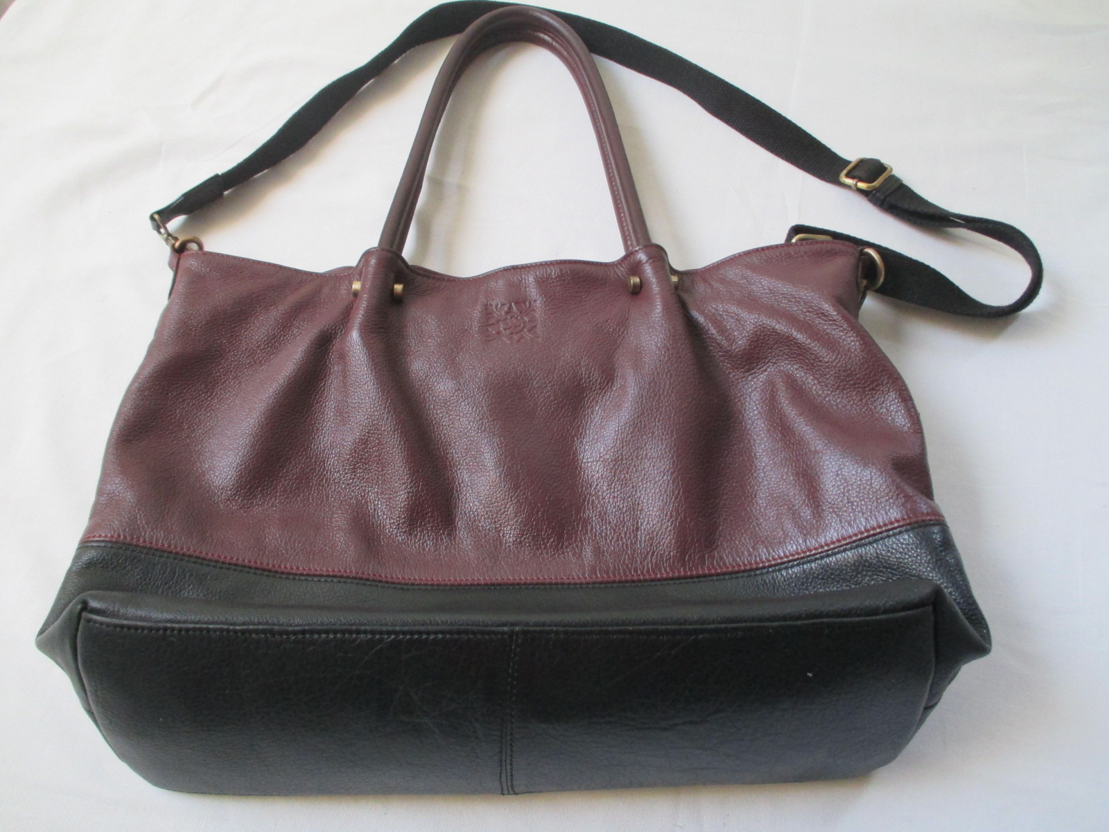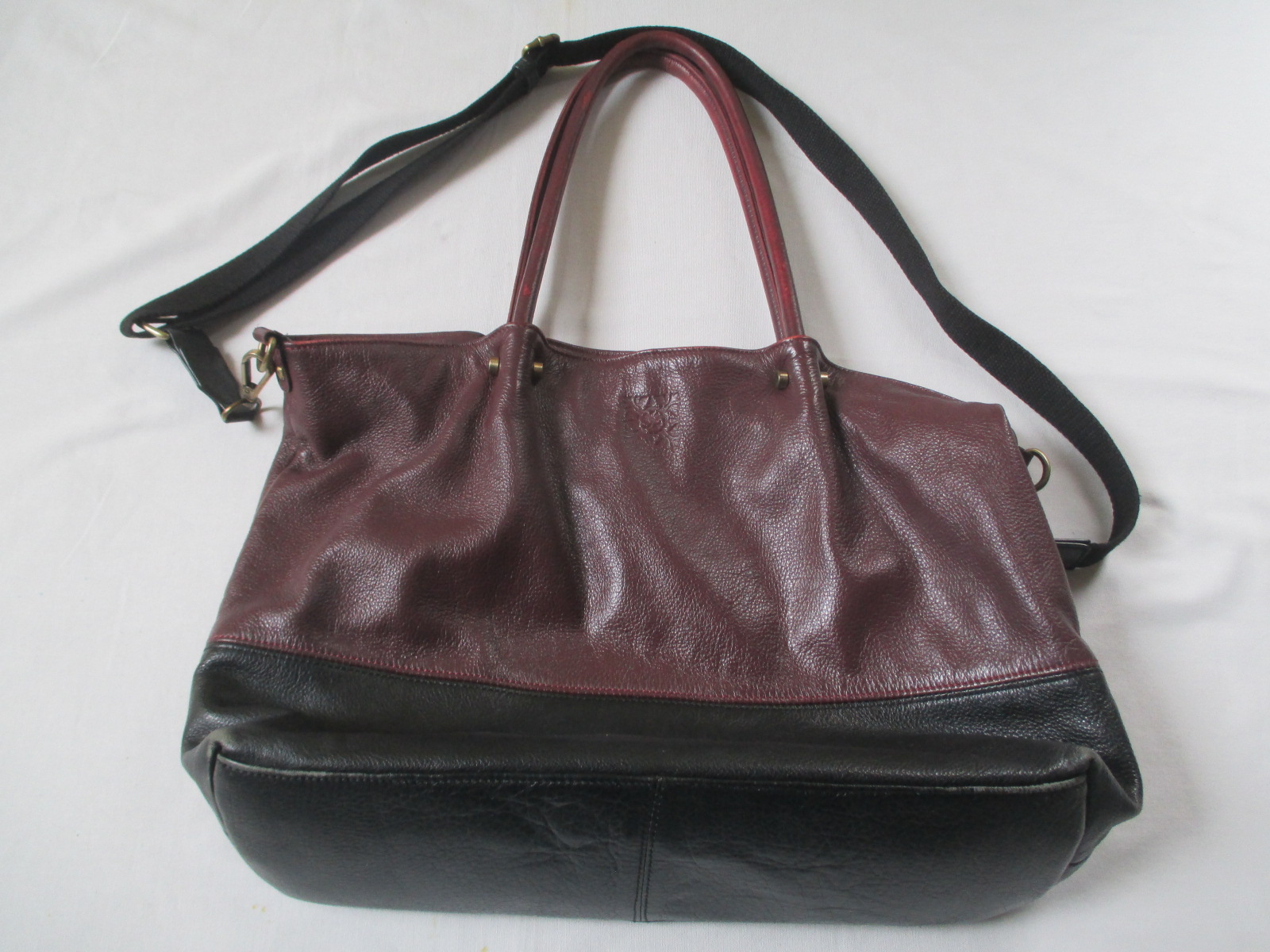 ボルドー系の深い色合いと黒のコンビネーションでロエベのロゴの型押しも
