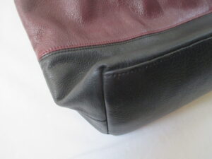 部分的に補色・補修をした後 染め直しをせずに革の下地を補修して