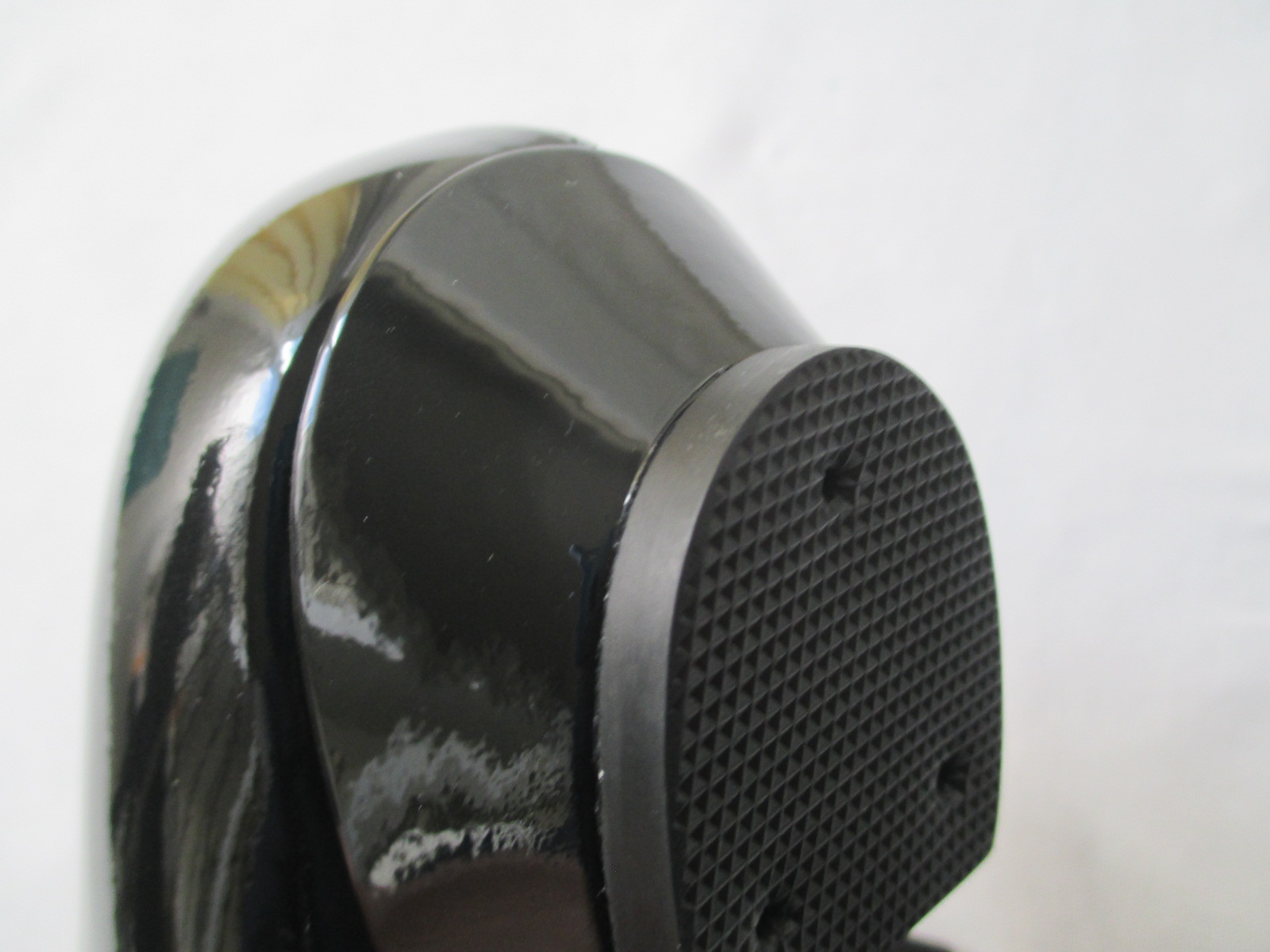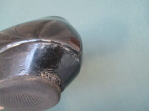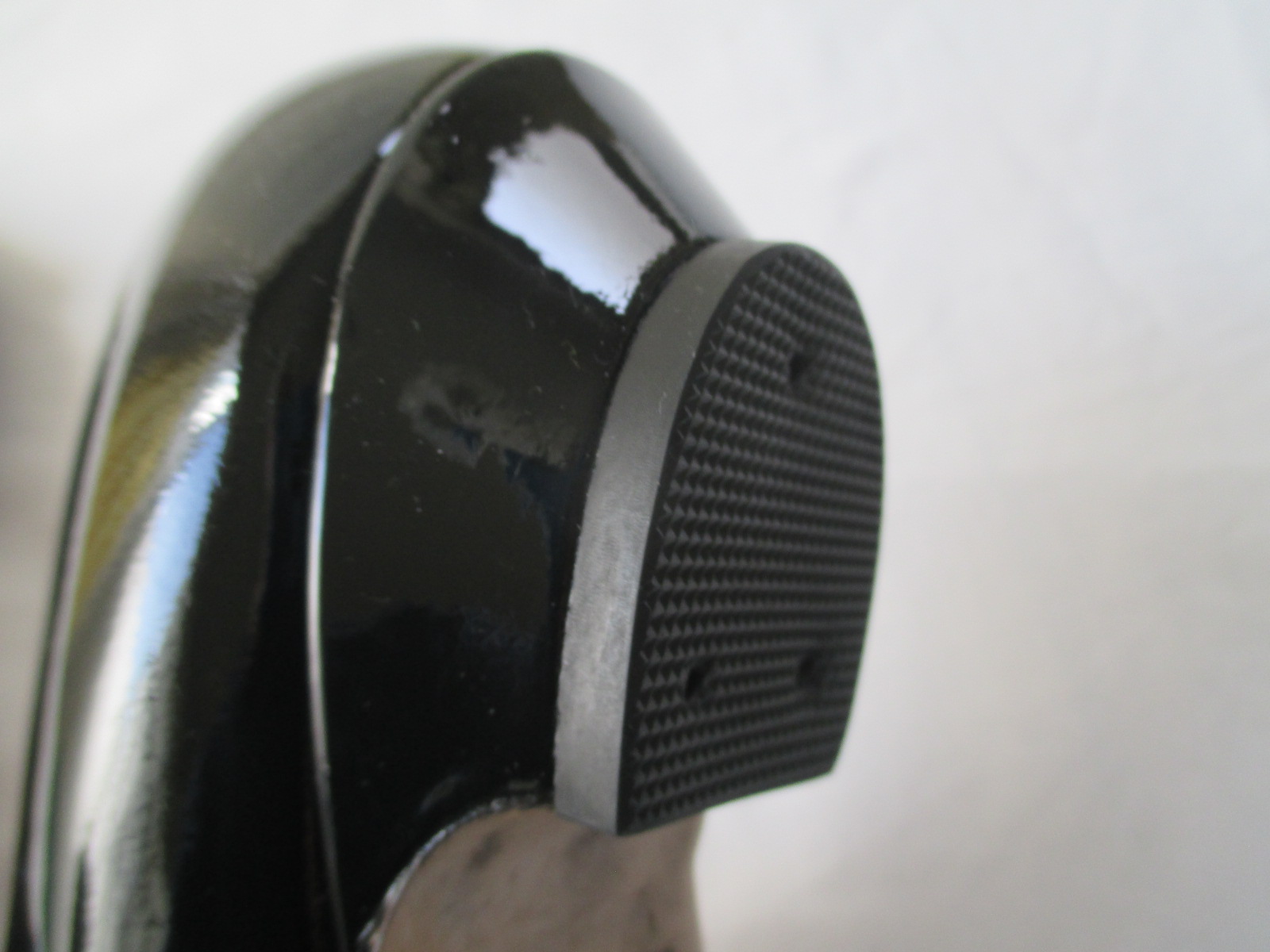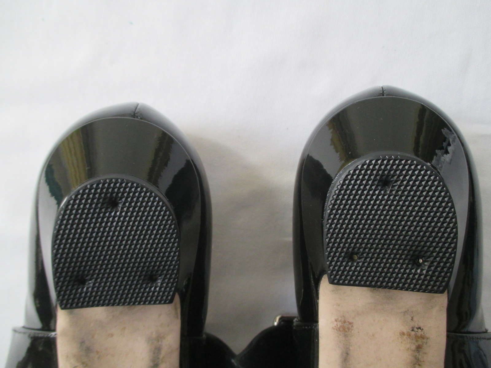 ヒールの左右も打痕やはがれ・キズが多く使用感が強く出て目立ちます。
