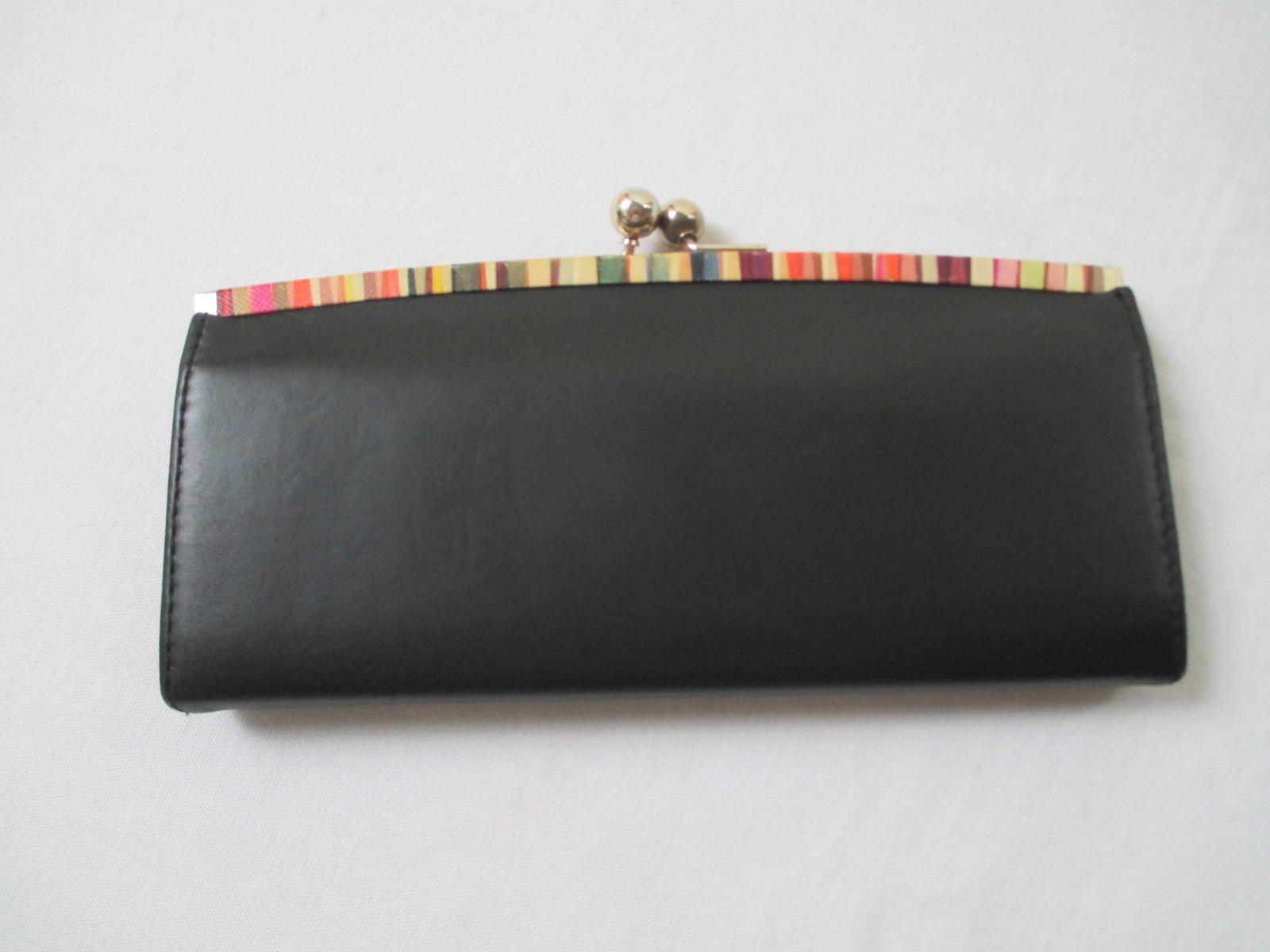 財布口にマルチカラーのカラフルな革が巻いてあり