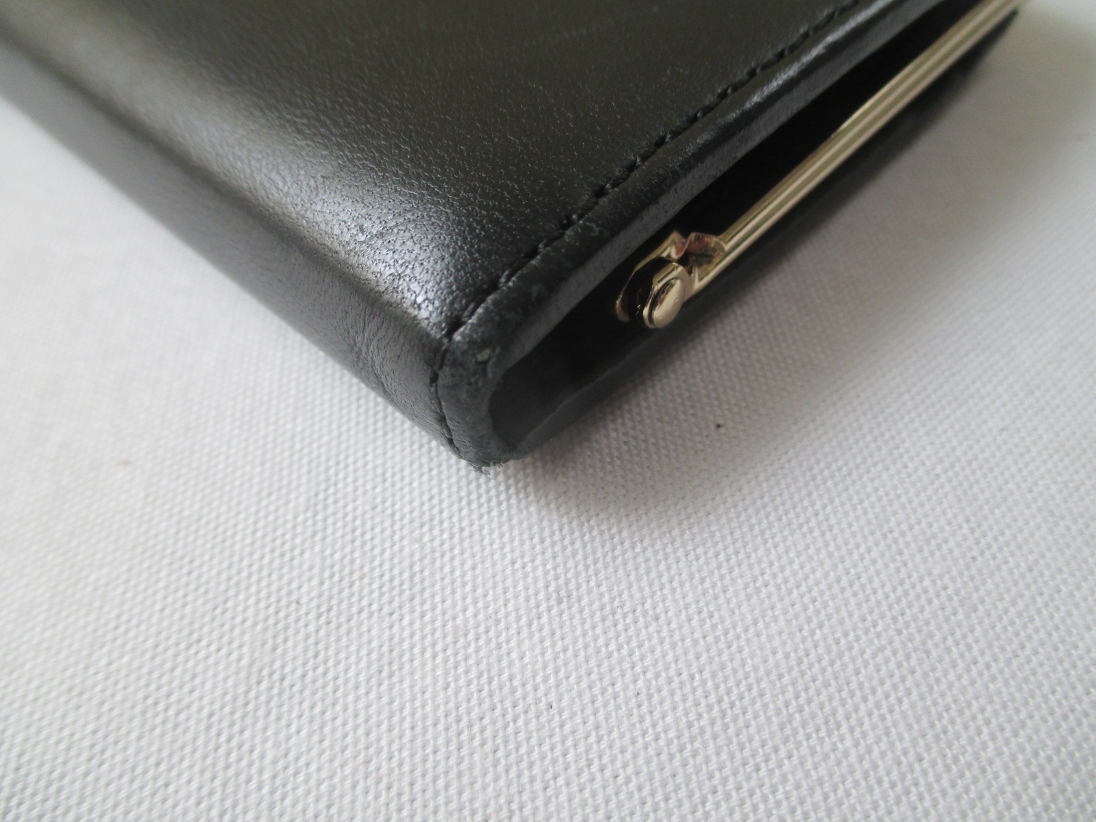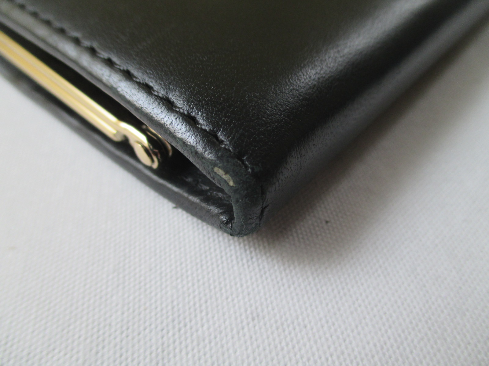 Before がま口のタイプで芯材や金属のフレームが硬いので折れ曲がり部分に