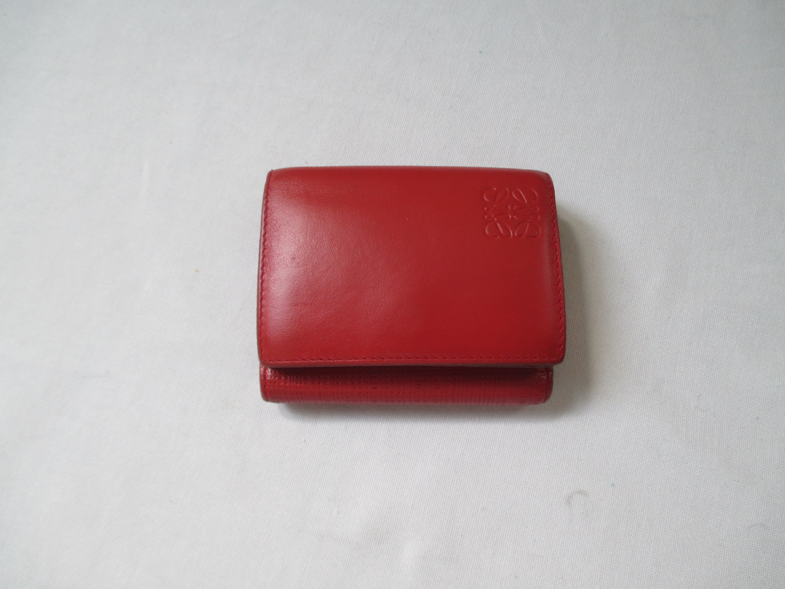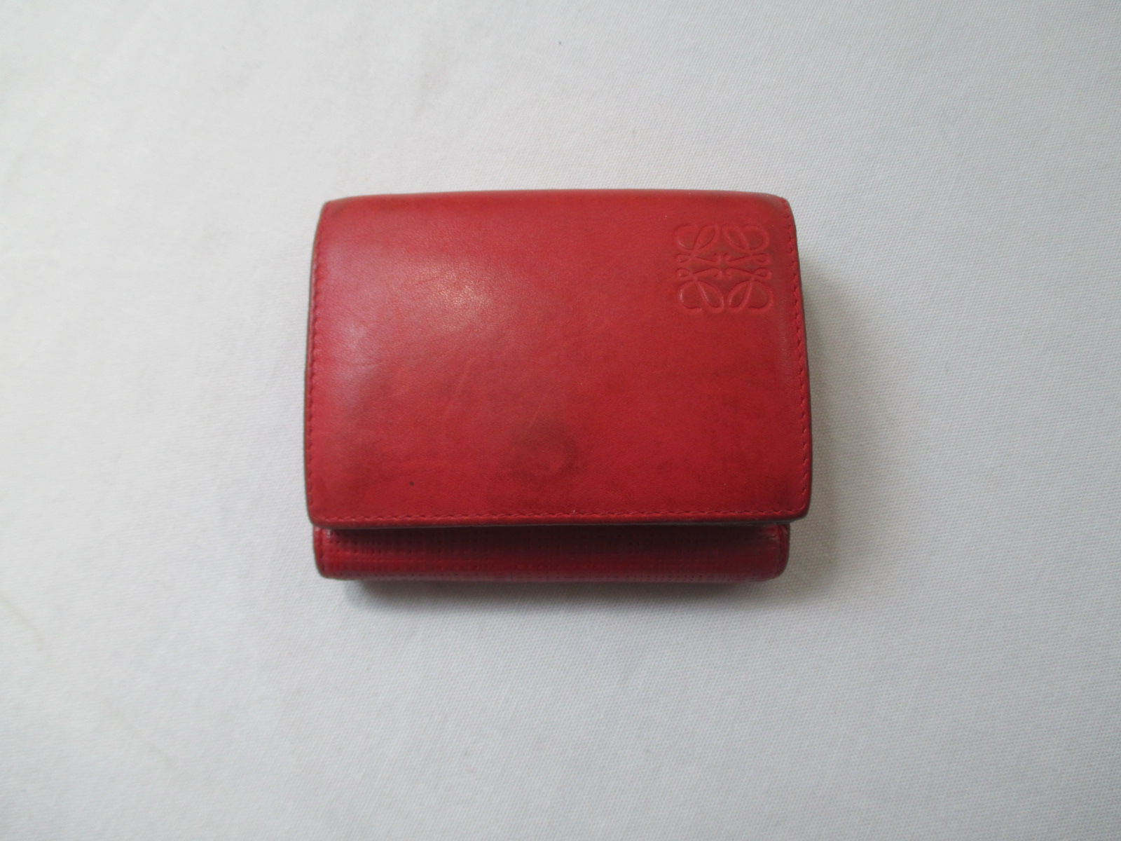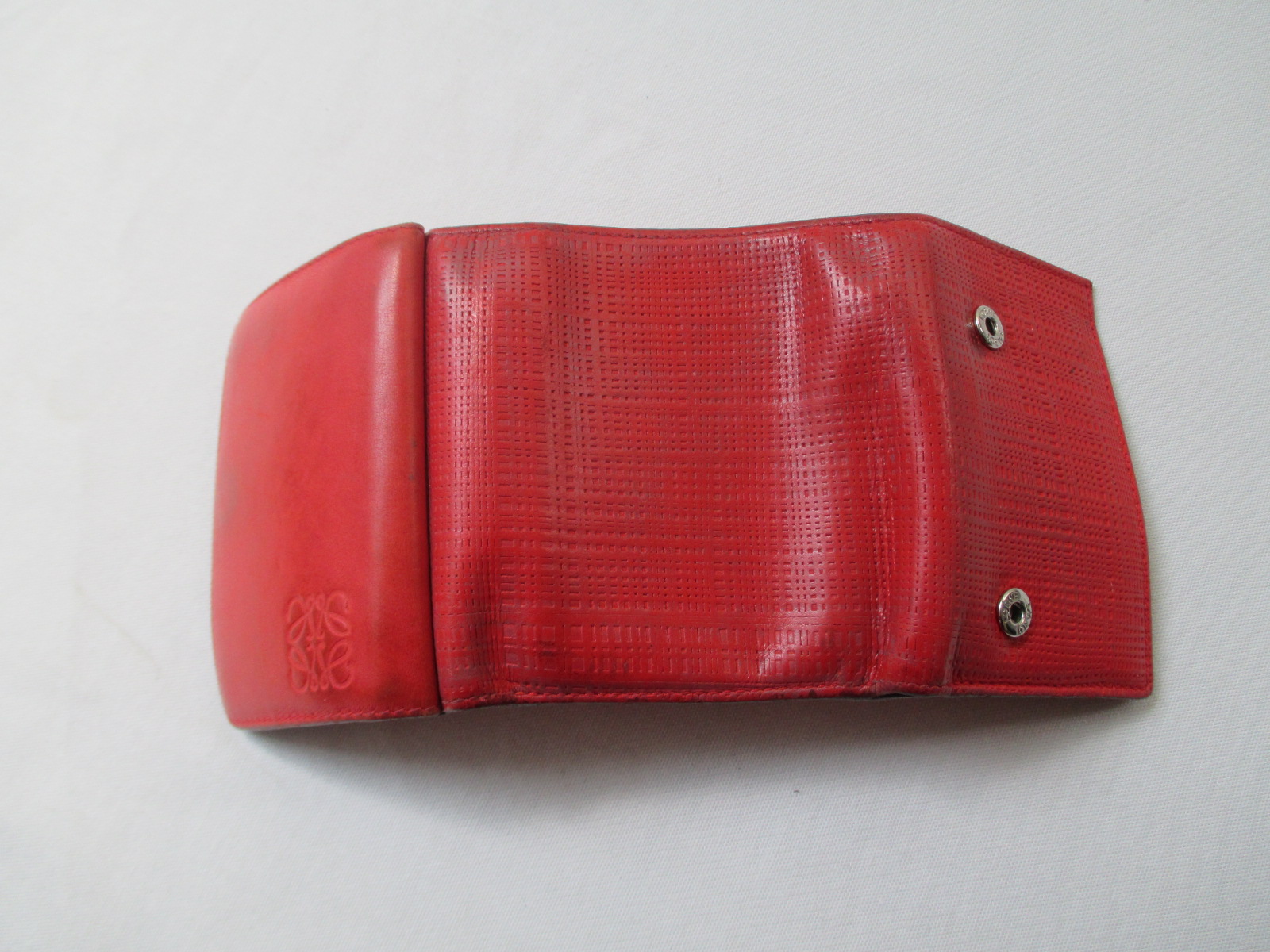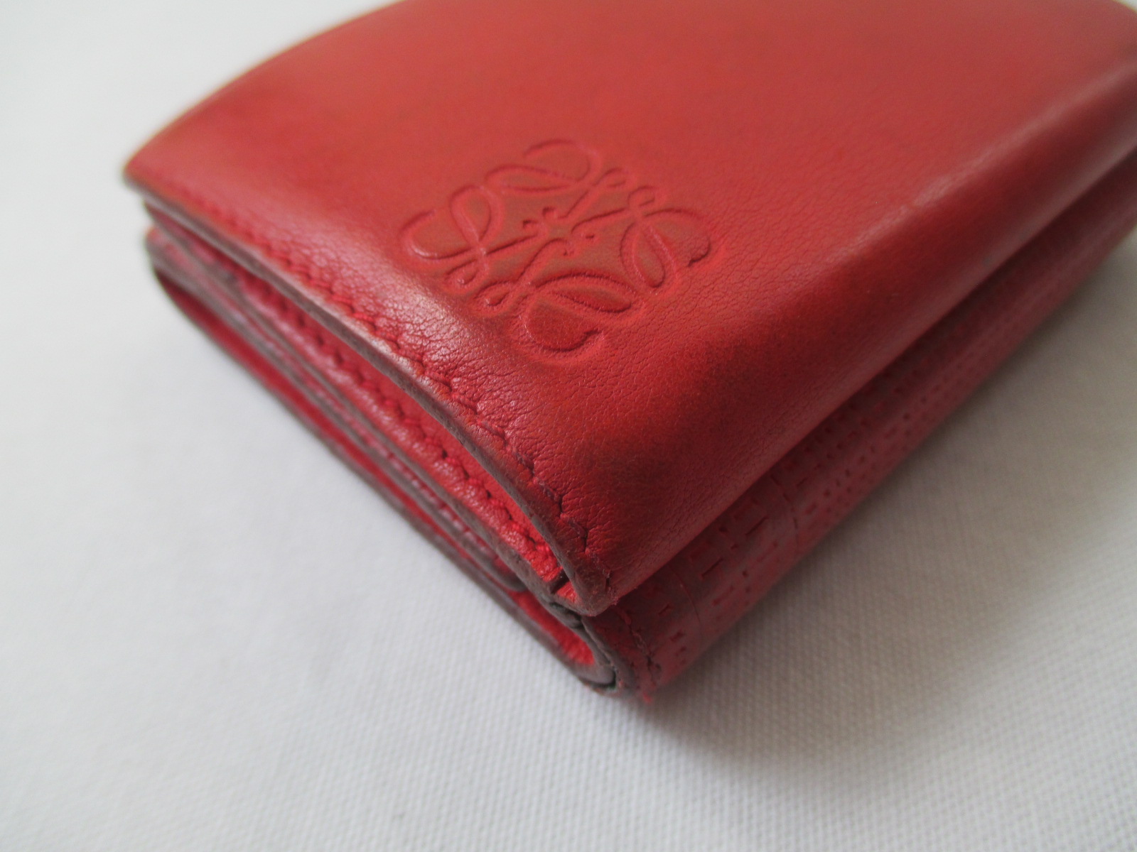 【LOEWE 財布 修理】ロエベ 財布 赤 色はげ・黒ずみの目立つ財布の染め直し