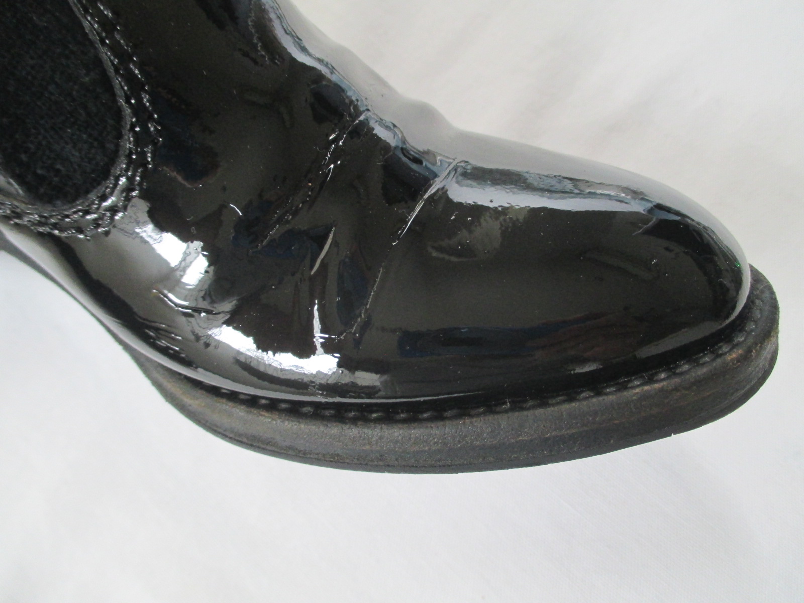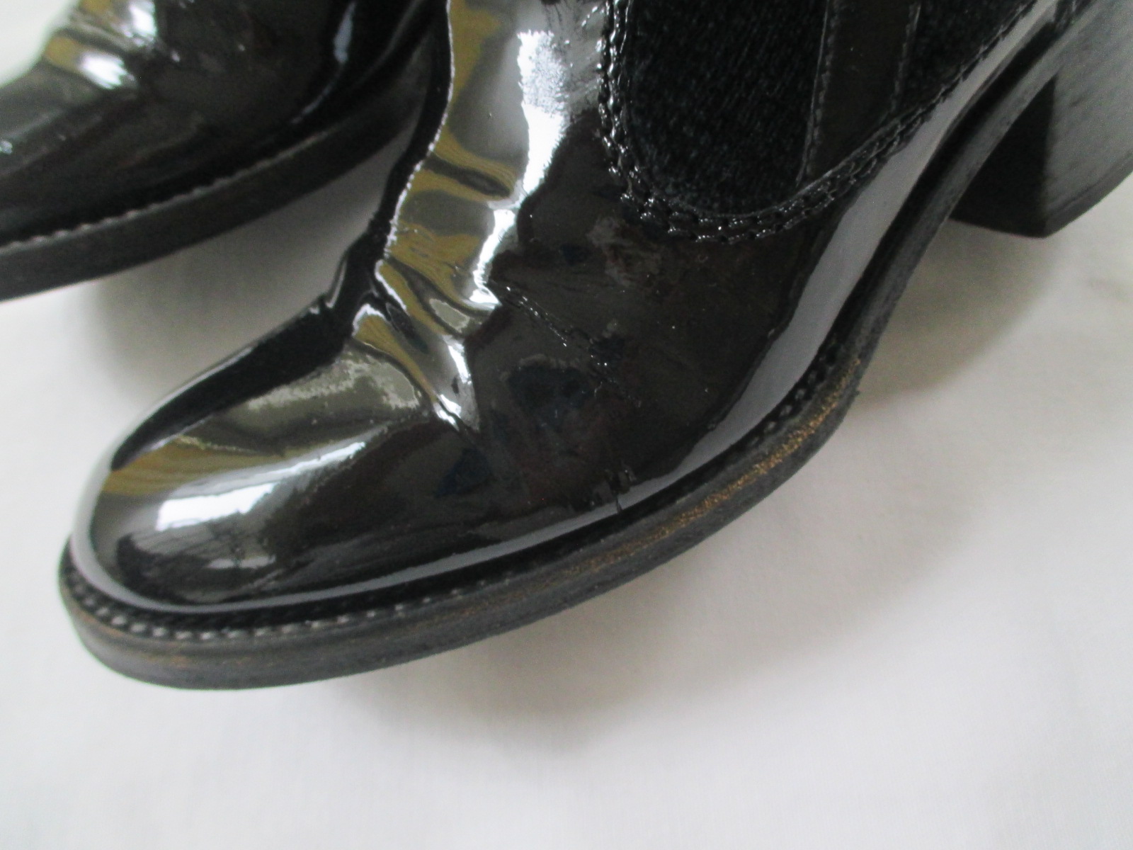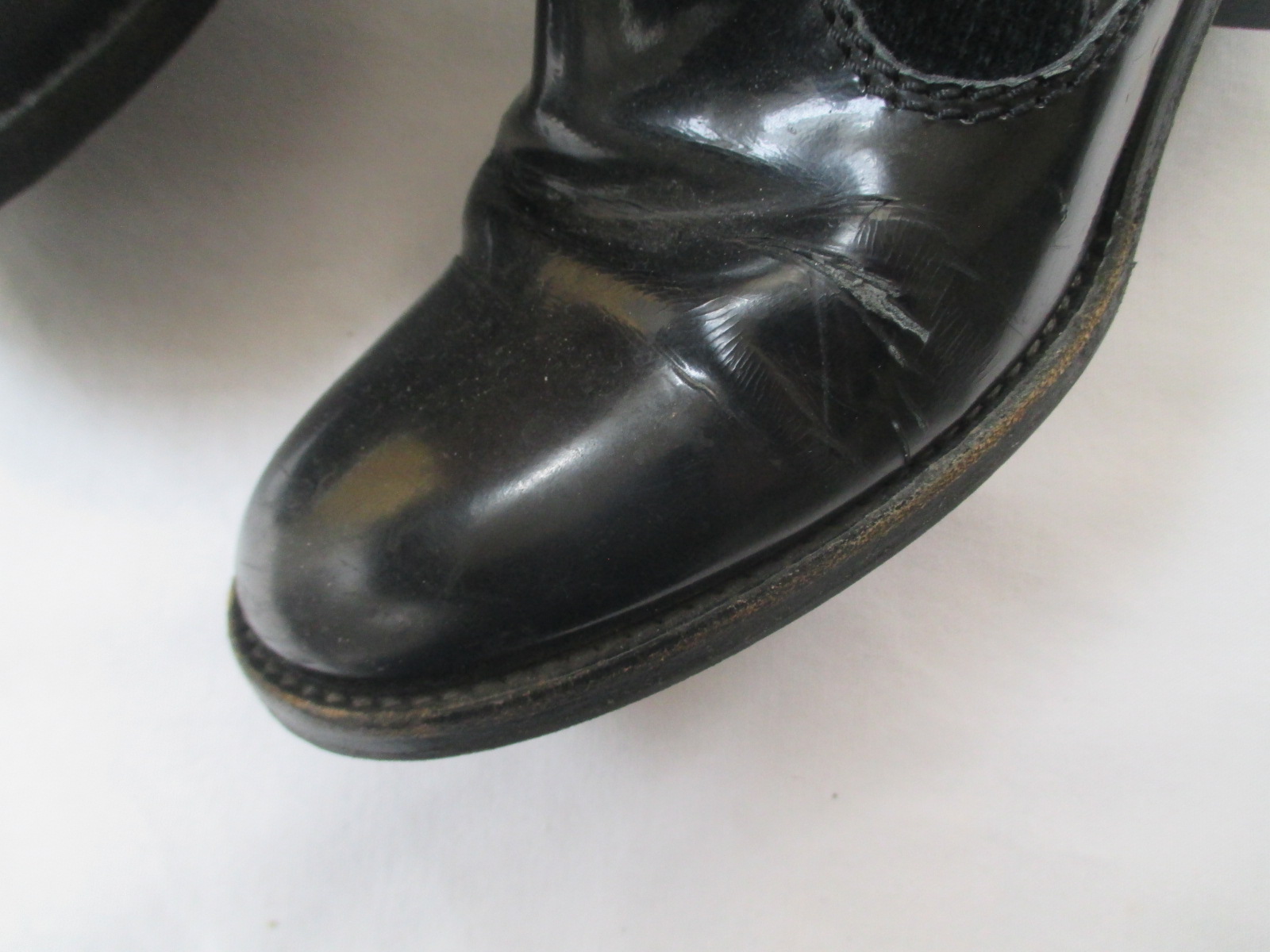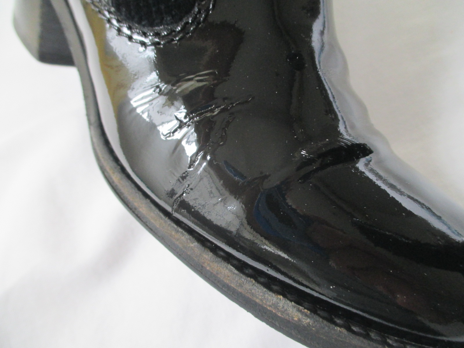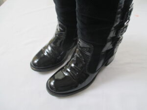 【CHANEL 靴 修理】シャネル ブーツ エナメルの履きシワ・ひび割れを目立たなくしました
